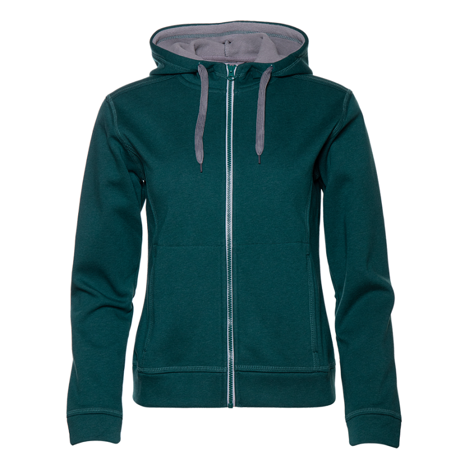Женская толстовка прямого силуэта с капюшоном комфортной глубины, втачным рукавом, прорезным карманов и застежкой на контрастную молнию. Капюшон дополнен плоским шнурком для регулировки прилегания, манжет и низ изделия выполнены из основного полотна.