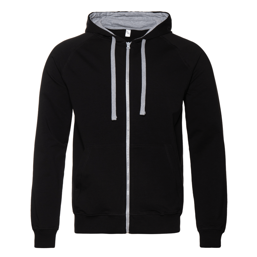 Мужская толстовка прямого силуэта с капюшоном комфортной глубины, рукавом-реглан, глубоким накладным карманом и застежкой на молнию контрастного цвета. Капюшон дополнен шнурком для регулирования прилегания, манжет и низ изделия оформлены широкой эластичной резинкой.