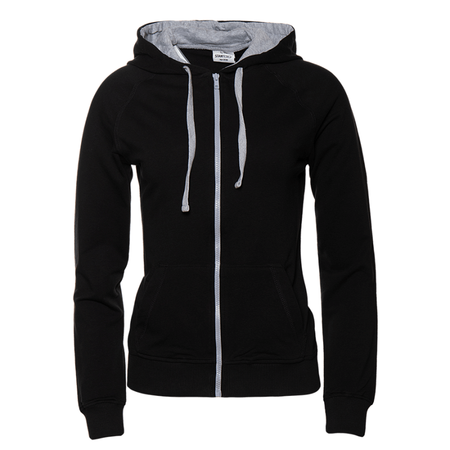 Женская олимпийка прямого силуэта с капюшоном комфортной глубины, рукавом-реглан, накладным карманом и застежкой на контрастную молнию. Капюшон дополнен шнурком для регулирования прилегания, манжет и низ изделия оформлены широкой эластичной резинкой.
