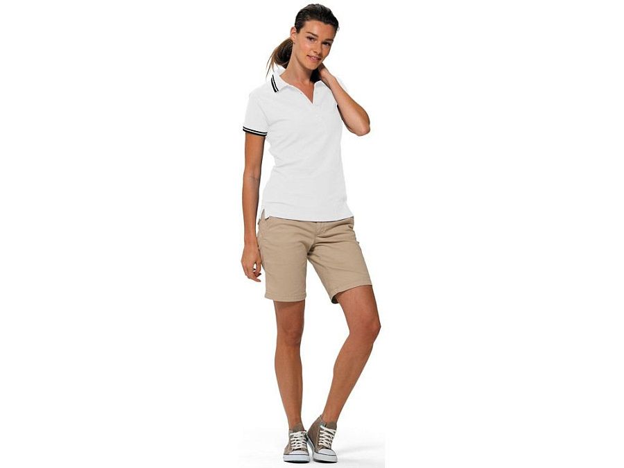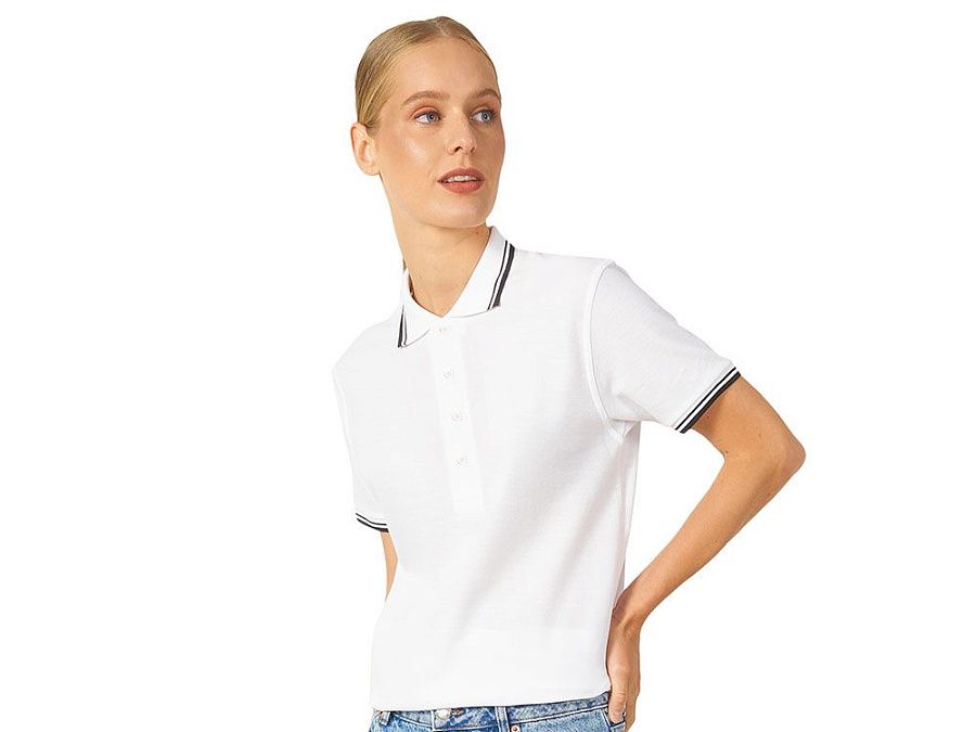 Рубашка-поло Erie с окантовкой. Воротник и манжеты резинка 1х1. Мужская модель с двумя пуговицами, женская - 4 пуговицы в тон изделия. Обшивка внутри воротника. Женская модель с разрезами по бокам. Женская модель приталена. Пике, 100% чесаный хлопок. Плотность 180 г/м2.