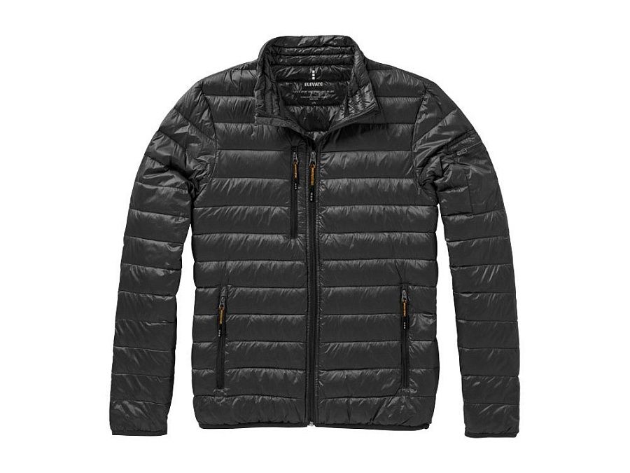 Легкая куртка Scotia. Стандартный покрой. Ткань не пропускает пух. Карманы для рук и нагрудный на молнии. Карман на рукаве на молнии можно использовать для нанесения. Резинка на манжетах и внизу куртки. Ремешки на собачку (второй комплект в цвете антрацит). Внутренний противоветровой клапан и защита подбородка. Ткань дышащая, ветронепроницаемая и влагоотталкивающая. Отражающий лого сзади. Легкий пуховик. Ткань из 100% нейлона с матовым и блестящим водоотталкивающим покрытием, 20D. 80% пух и 20% перо. 115 г/м².