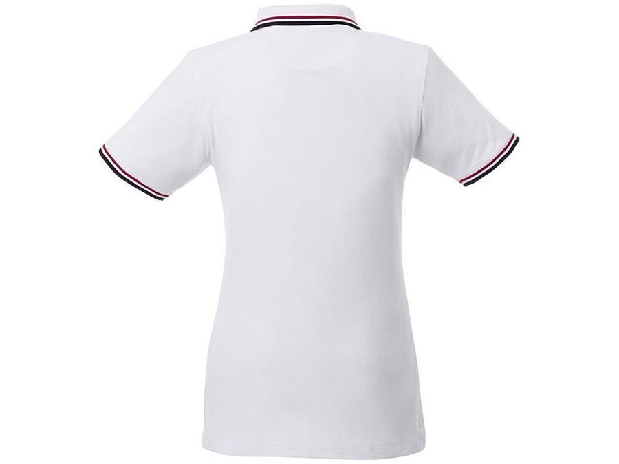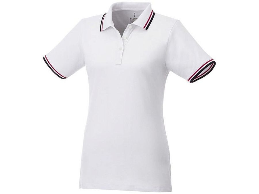 Женская футболка поло Fairfield с коротким рукавом с проклейкой. Воротник гладкой вязкой в рубчик. Манжеты гладкой вязкой в рубчик. Контрастные окантовки. Планка с тремя пуговицами (мужская модель).Гравированные пуговицы в цвет изделия. Комфортный ярлык-трансфер на изделии. Трикотажное пике, 100% хлопок. 180 г/м².