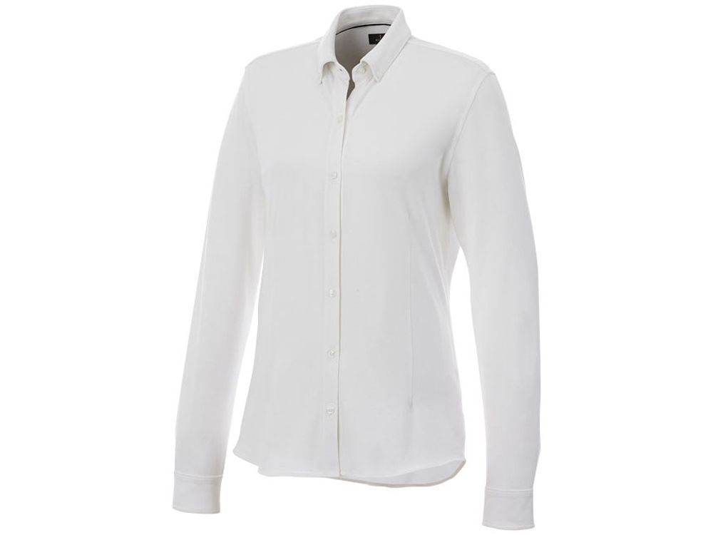 Женская рубашка Bigelow из пике с длинным рукавом. Воротник из ткани изделия. Стрейтч-ткань. Регулируемый манжет на одной пуговице. Воротник на пуговицах. Швы моделирующие фигуру и приталенный крой. Атласная окантовка внутренней части горловины. Гравированные пуговицы в цвет изделия. Тканая метка. Двойное трикотажное пике, 95% хлопок и 5% эластан. 200 г/м².