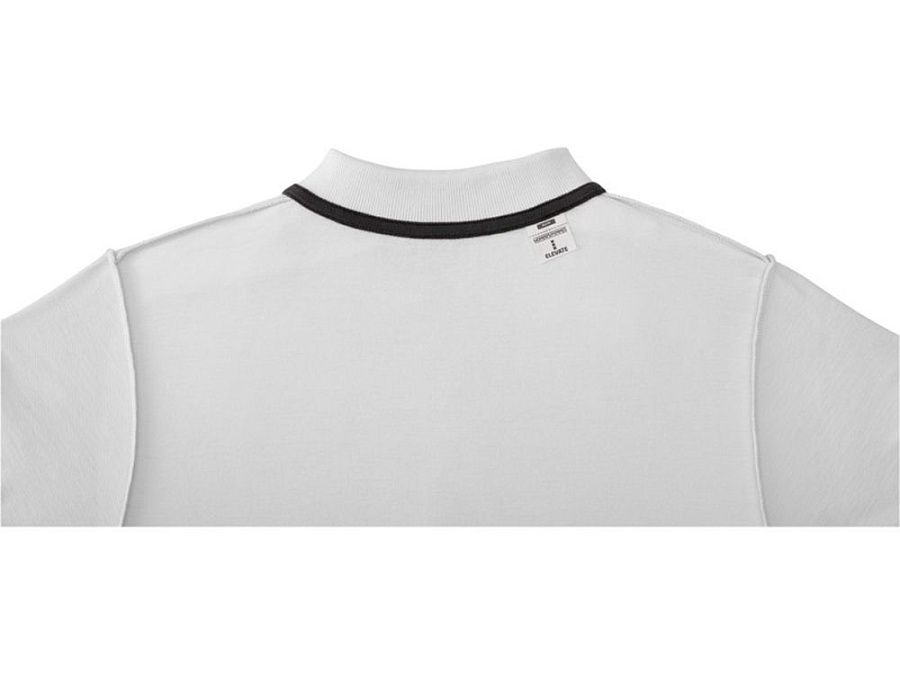 Женское поло Helios с коротким рукавом. Женская модель с разрезами по бокам. Отрезной-отрывной ярлык для комфорта. Воротник гладкой вязкой в рубчик. Планка с тремя пуговицами. Двойная строчка на воротнике и внизу изделия. Пуговицы в цвет изделия. Полоска на горловине в контрастном цвете. Трикотаж Piqué, 100 % хлопок. 180 г/м².
