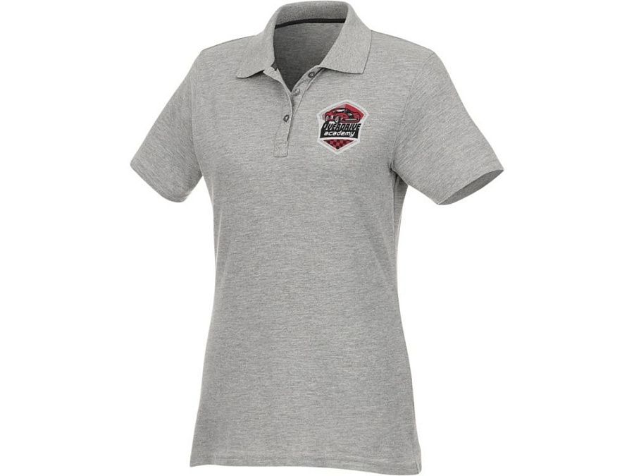 Женское поло Helios с коротким рукавом. Женская модель с разрезами по бокам. Отрезной-отрывной ярлык для комфорта. Воротник гладкой вязкой в рубчик. Планка с тремя пуговицами. Двойная строчка на воротнике и внизу изделия. Пуговицы в цвет изделия. Полоска на горловине в контрастном цвете. Трикотаж Piqué, 100 % хлопок. 180 г/м².