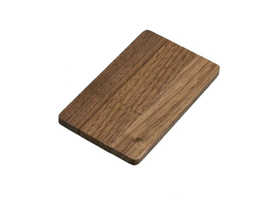 Флеш-накопитель в виде деревянной карточки с выдвижным механизмом, объем памяти 16 Гб. Деревянный корпус.