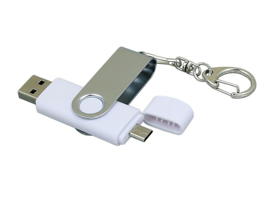 Флеш-накопитель поворотный механизм, c дополнительным разъемом Micro USB с одноцветным металлическим клипом, объем памяти 16 Гб. Пластиковый корпус.