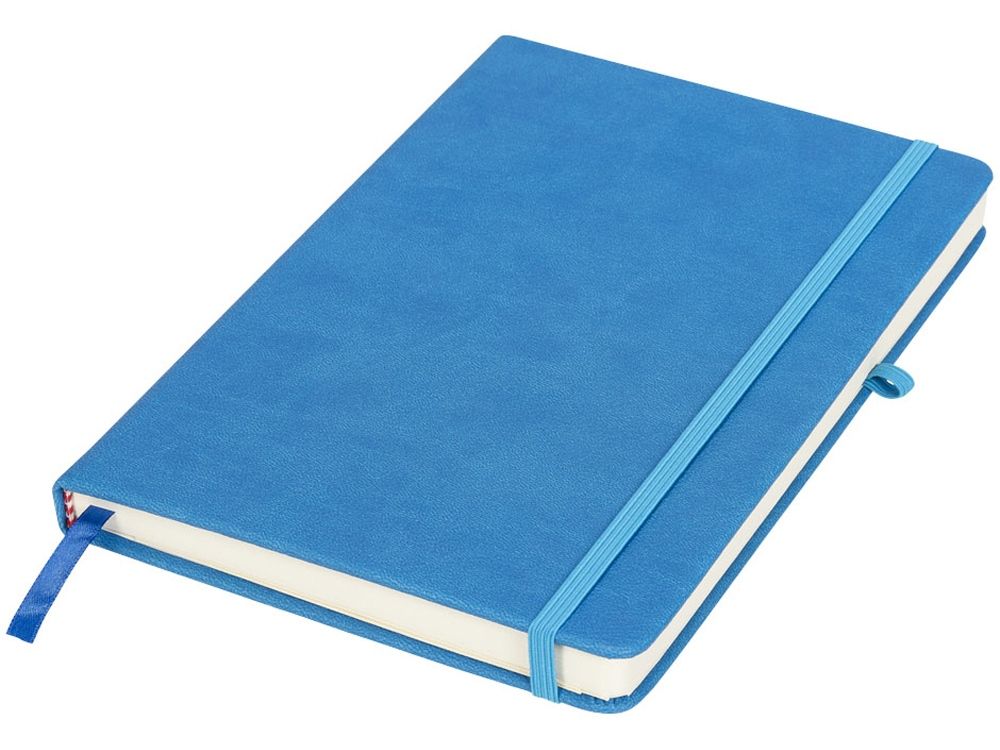 Блокнот Rivista среднего размера. Блокнот Rivista отличается стильным современным дизайном с высококачественной обложкой, идеально подходящей для нанесения логотипа и информации вашей компании. Предлагаются современные цвета. Также предусмотрена эластичная застежка, держатель для ручки, лента-закладка и внутренний кармашек на задней стороне обложки. Содержит 128 листов линованной бумаги (70 г/м²) кремового цвета. ПУ.