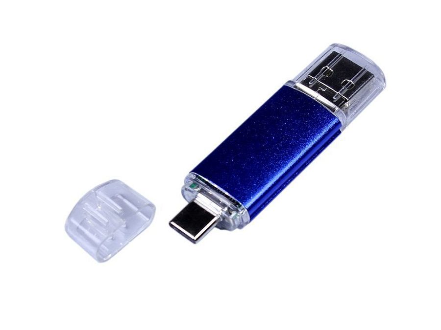 Флеш-накопитель c двумя дополнительными разъемом Micro USB и TypeC, металлический корпус., объем памяти USB3 32 Гб. Металлический корпус.