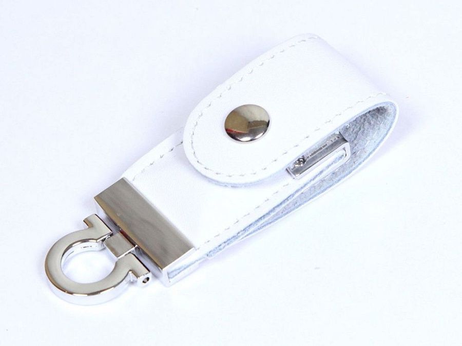 Флеш-накопитель из натуральной кожи с металлическими вставками, в виде брелока для ключей, объем памяти 8 Гб. Кожаный корпус.