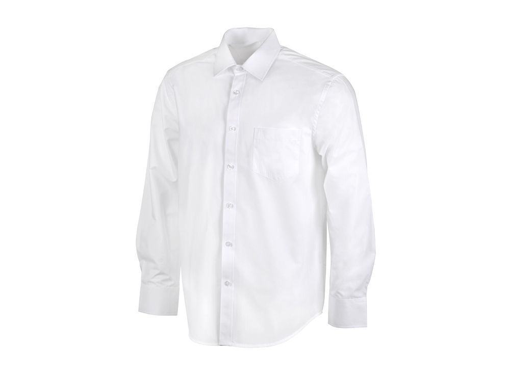 Рубашка мужская с длинным рукавом на семи пуговицах. Накладной карман на груди слева, на спинке складки из-под кокетки, манжеты с двумя пуговицами и пуговица по планке рукава.