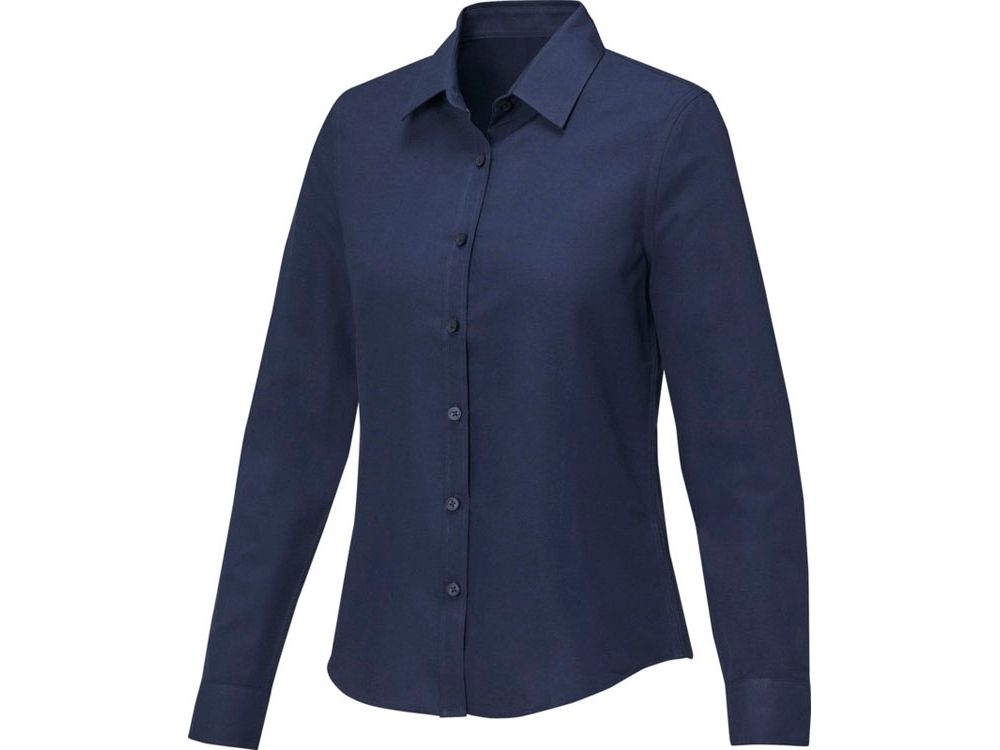 Pollux женская рубашка с длинными рукавами. Отрывной-отрезной лейбл. Регулируемая манжета рукава с одной складкой. Пуговицы в тон. Встречная складка на спинке. Ткань Оксфорд 55% хлопка, 45% полиэстера, 130гр.