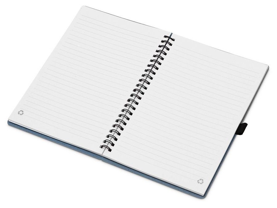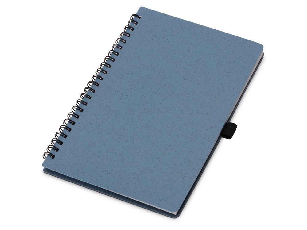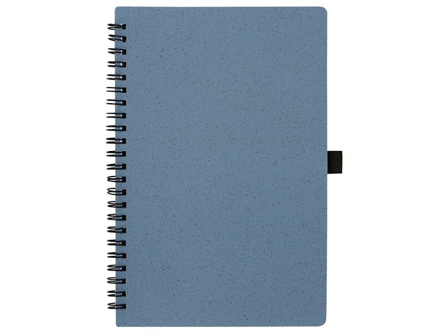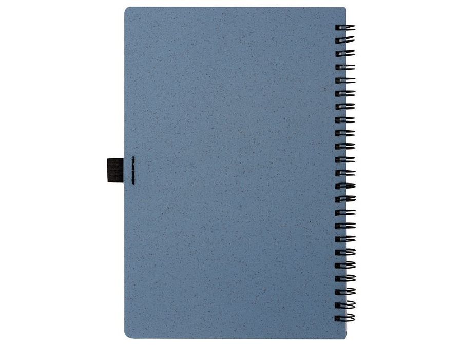 Блокнот с обложкой из переработанной пшеницы и пластика. Блок состоит из 60 листов переработанной бумаги белого цвета. Крепление - пружина. Дополнен петлей для ручки и горизонтальной резинкой.