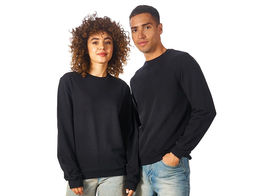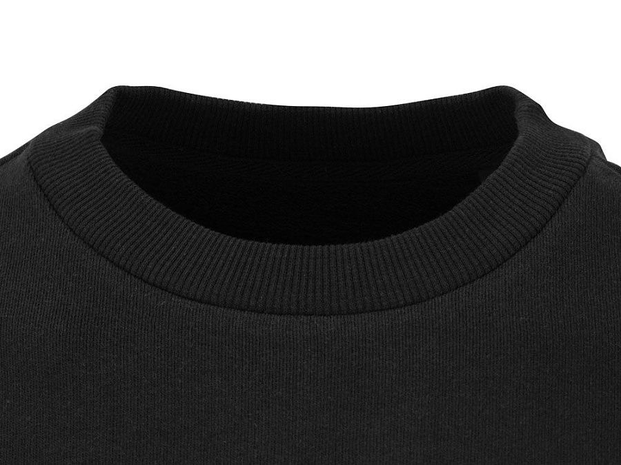 Свитшот из плотного 3х ниточного хлопкового футера. Горловина, манжеты и низ отделан рибом 2х2. Горловина спинки внутри дополнительно укреплена тесьмой с выработкой елочка. Полотно из утяжеленного хлопкового футера внутри с петельками без начеса.