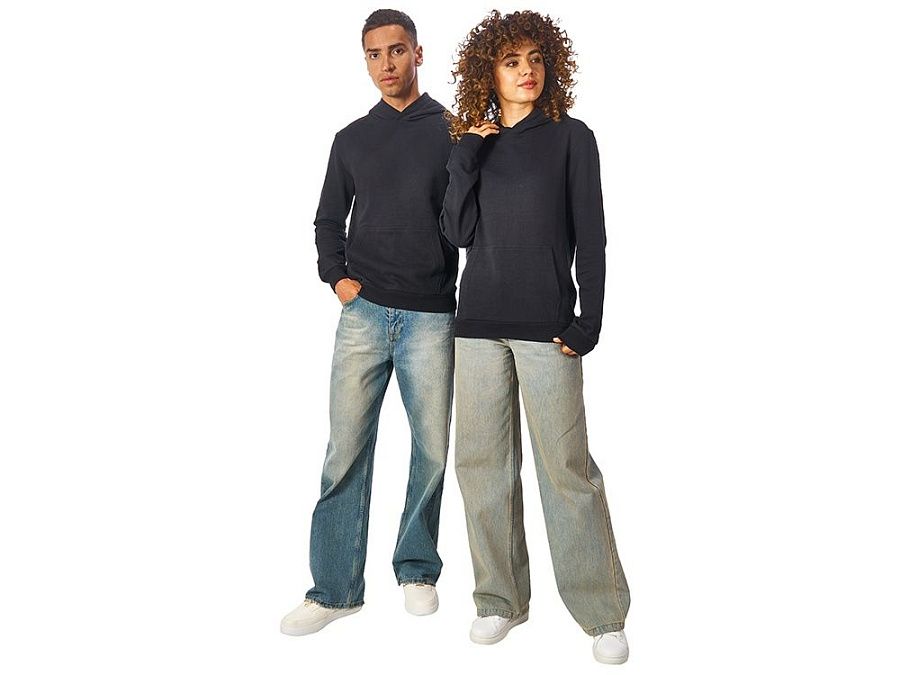 Толстовка с капюшоном (худи) из плотного хлопкового 3х ниточного футера. В капюшоне подкладка в тон, а горловина спинки дополнительно укреплена тесьмой с выделкой «елочка». Капюшон без шнурков – ничего не отвлекает от вашего брендирования. Манжеты и низ изделия отделаны рибом 2х2. Глубокий комфортный карман кенгуру на полочке. Полотно из утяжеленного хлопкового футера внутри с петельками без начеса.