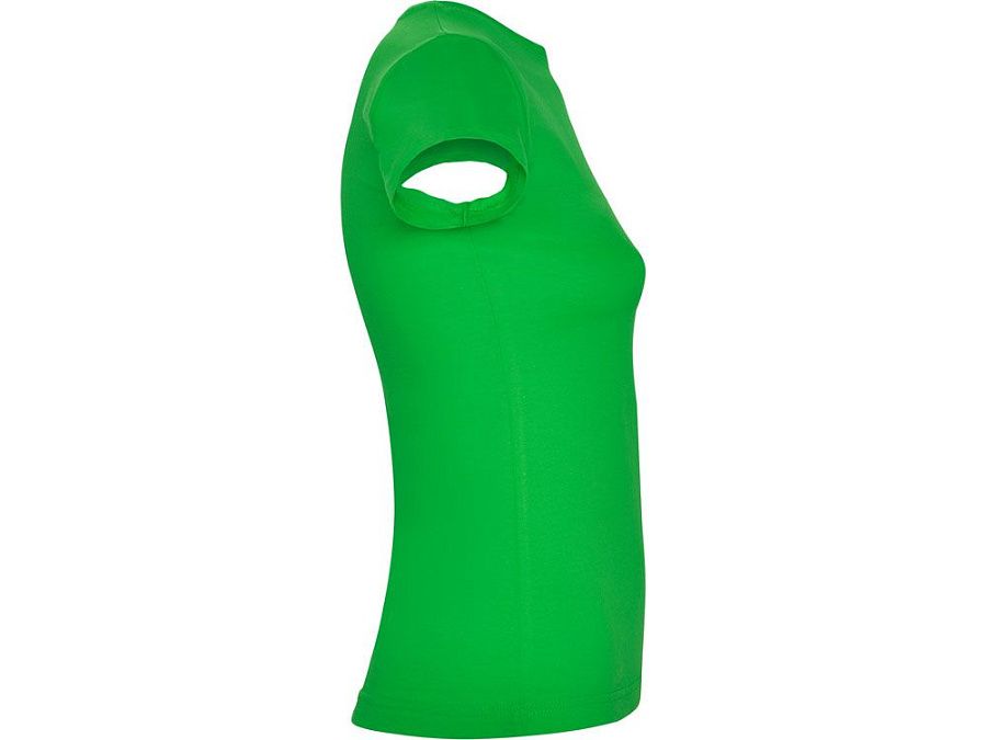 Приталенная женская футболка с боковыми швами и круглым вырезом горловины, двухслойный риб 1х1. Широкая цветовая палитра.