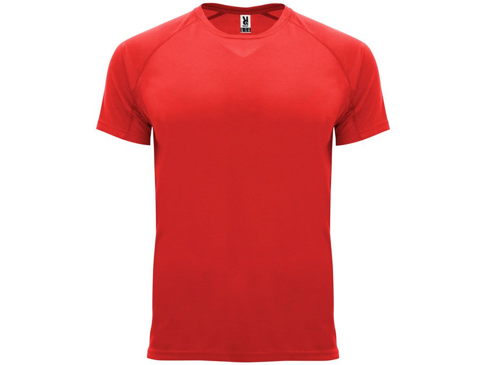Спортивная футболка с коротким рукавом реглан. Круглый вырез горловины с отделкой плоским швом. Рукав сложного кроя для обеспечения дополнительного удобства при занятиях спортом. Отделка плоским швом с застилом по пройме и рукавам.
