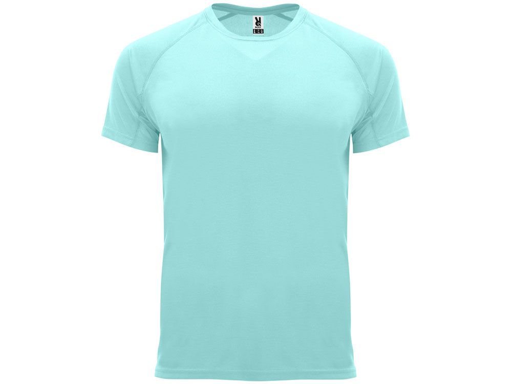 Спортивная футболка с коротким рукавом реглан. Круглый вырез горловины с отделкой плоским швом. Рукав сложного кроя для обеспечения дополнительного удобства при занятиях спортом. Отделка плоским швом с застилом по пройме и рукавам.