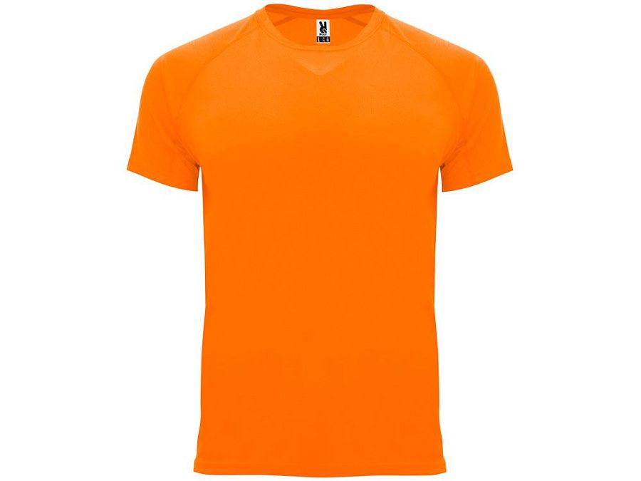 Спортивная футболка с коротким рукавом реглан. Круглый вырез горловины с отделкой плоским швом. Рукав сложного кроя для обеспечения дополнительного удобства при занятиях спортом. Отделка плоским швом с застилом по пройме и рукавам.