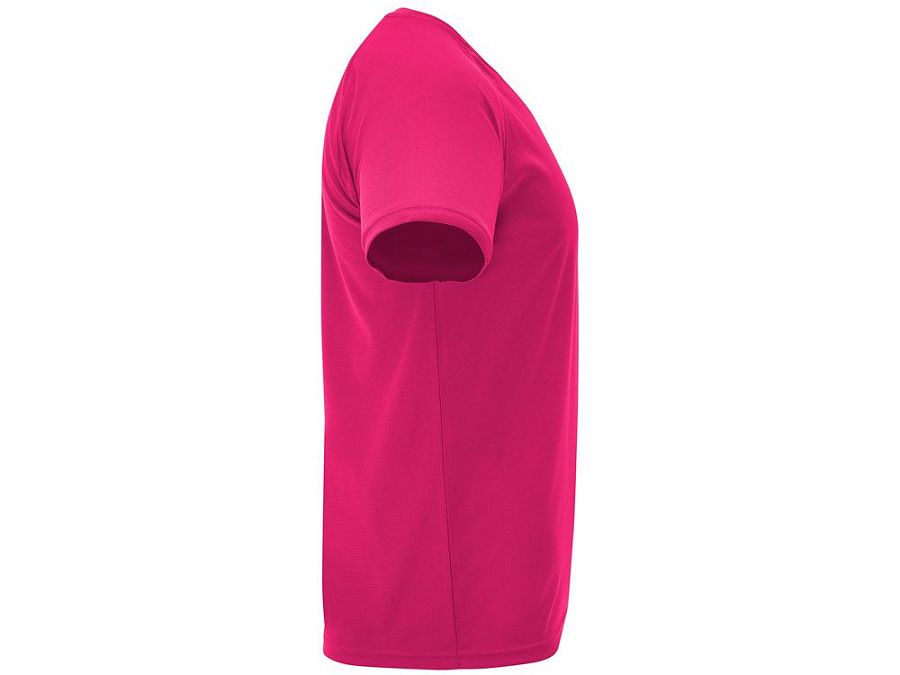 Спортивная футболка с коротким рукавом реглан. Круглый вырез горловины с отделкой плоским швом. Рукав сложного кроя для обеспечения дополнительного удобства при занятиях спортом. Отделка плоским швом с застилом по пройме и рукавам.