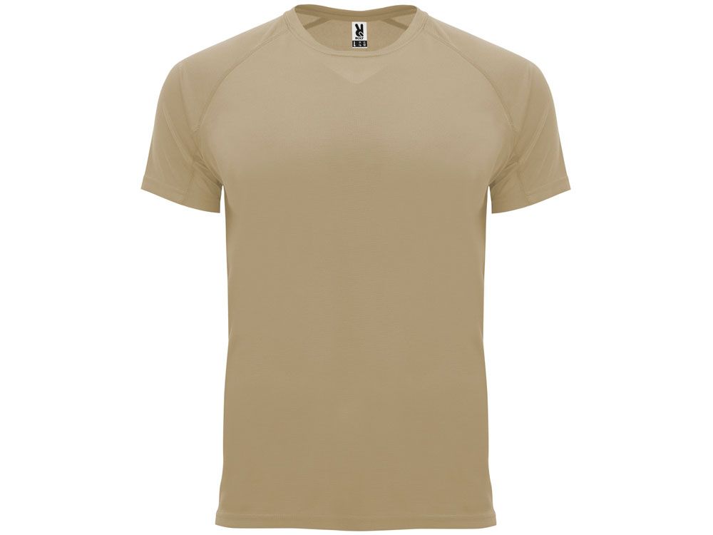 Спортивная футболка с коротким рукавом реглан. Круглый вырез горловины с отделкой плоским швом. Рукав сложного кроя для обеспечения дополнительного удобства при занятиях спортом. Отделка плоским швом с застилом по пройме и рукавам.