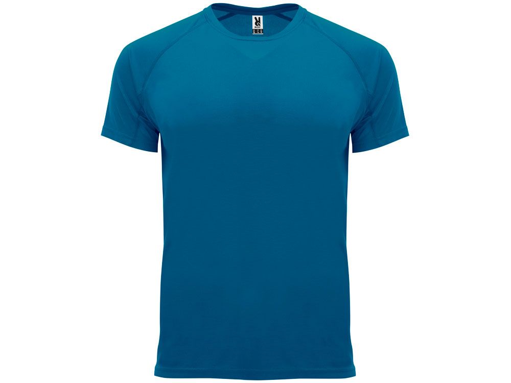 Спортивная футболка с коротким рукавом реглан. Круглый вырез горловины с отделкой плоским швом. Рукав сложного кроя для обеспечения дополнительного удобства при занятиях спортом. Отделка плоским швом с застилом по пройме и рукавам.