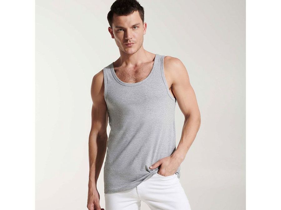 Мужская майка прилегающего силуэта. Отделка по горловине и проймам обтачкой из джерси.