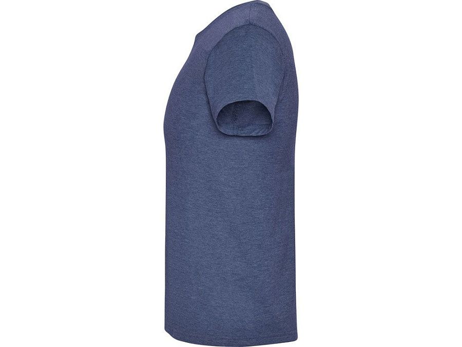 Футболка без боковых швов с коротким рукавом в меланжевом эффекте. Риб горловины 1х1 дополнительно укреплен двойной строчкой.