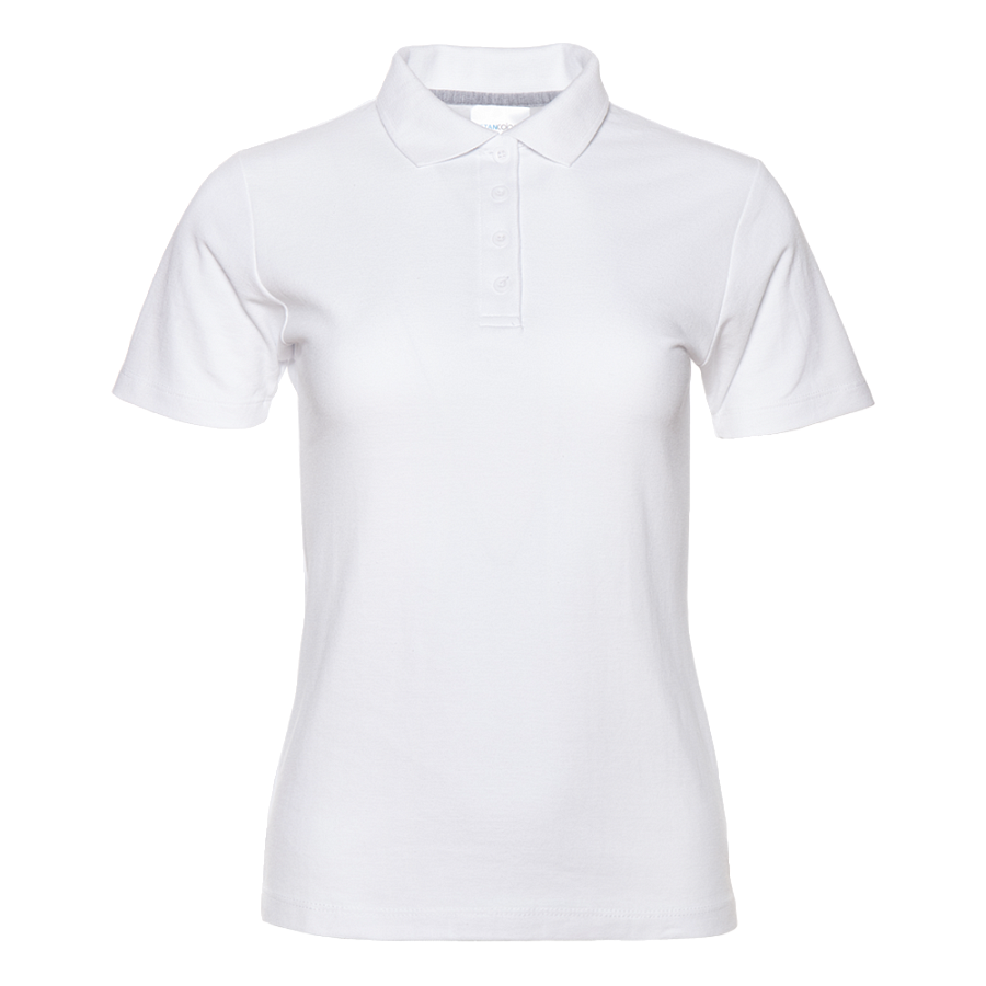 Женская рубашка поло приталенного силуэта с отложным воротником, втачным коротким рукавом и застежкой на пуговицы.