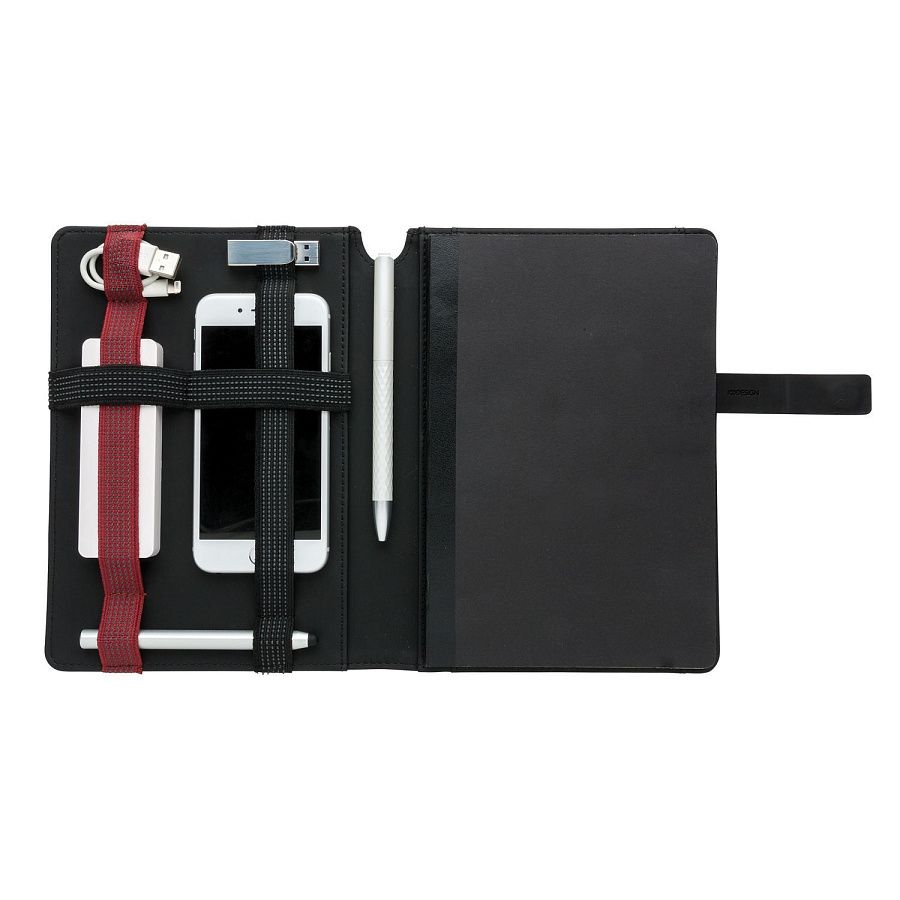 Обложка Kyoto формата A5 внутри представляет собой удобный органайзер для хранения гаджетов, ручек и прочих всегда необходимых под рукой мелочей. Универсальные прорезиненные эластичные ленты подойдут для любых гаджетов диагональю до 5,8 дюймов, например, для iPhone 7+ или Galaxy S8. В блокноте 64 листа кремовой бумаги плотностью 80 г/м2. Зарегистрированный дизайн®