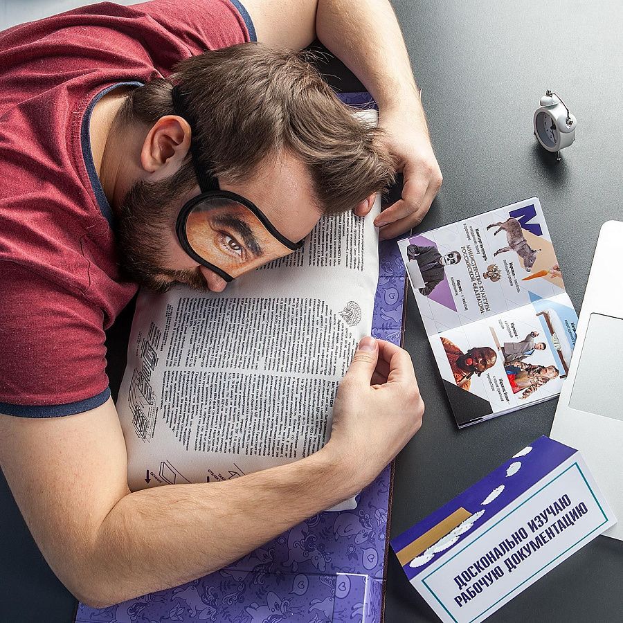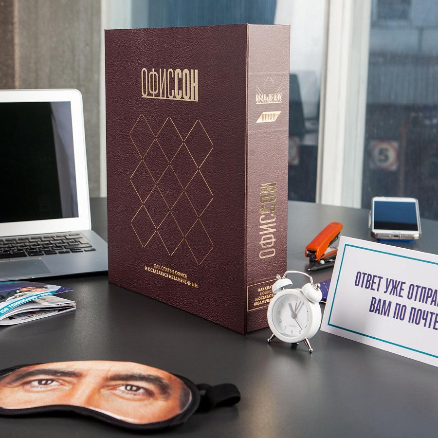 Набор для людей, знакомых с офисной жизнью и обладающих хорошим чувством юмора. Уникальный подарок, который поможет незаметно вздремнуть посреди рабочего дня. Просто откройте этот набор, маскирующийся под огромный фолиант, и вы найдёте всё необходимое, чтобы устроить на рабочем месте незаметное «сонное царство». Необычная концепция, качественный дизайн, лёгкая креативная подача набора, а также множество шуток заряжают позитивом и позволяют немного отвлечься от офисной рутины.