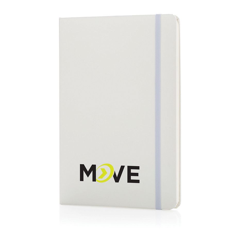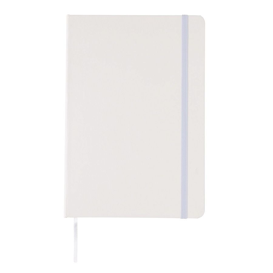 Блокнот для записей Basic в твердой обложке формата А5 на резинке с ляссе. 72 страницы, линованная бумага кремового цвета, плотностью 70 г/м2.