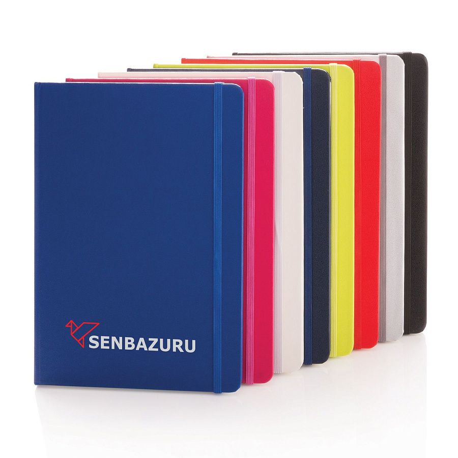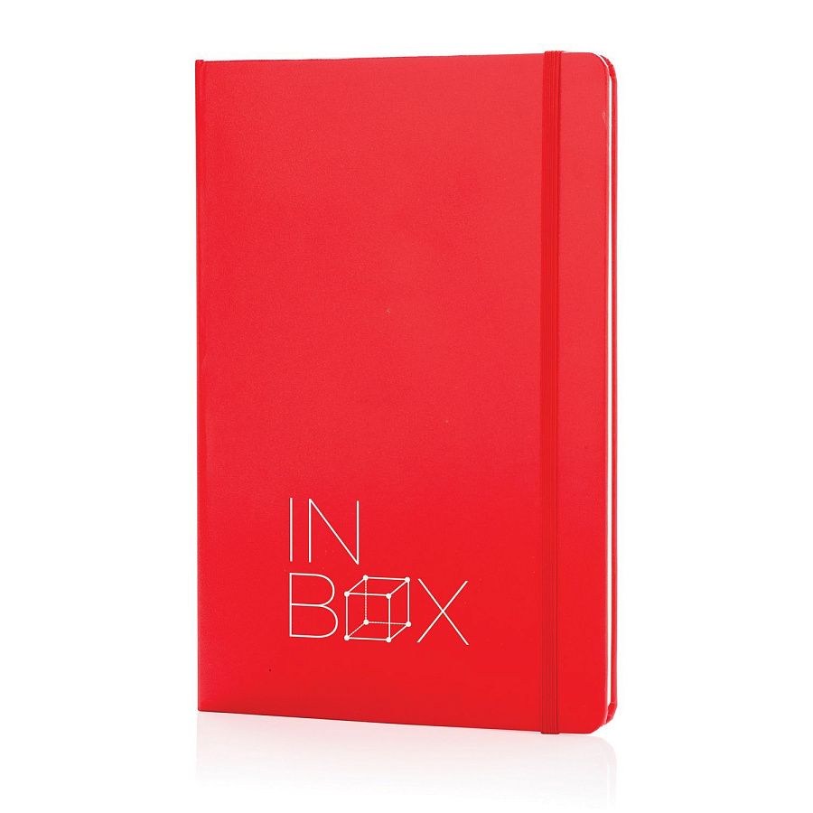 Блокнот для записей Basic в твердой обложке формата А5 на резинке с ляссе. 72 страницы, линованная бумага кремового цвета, плотностью 70 г/м2.