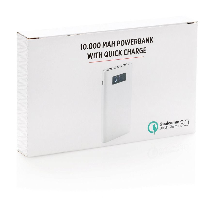 Алюминиевое зарядное устройство с литий-полимерным аккумулятором емкостью 10 000 мАч дополнено удобным LCD-дисплеем, на котором отображается уровень заряда. На устройстве предусмотрено два USB-выхода, один из которых, порт Quick Charge 3.0, предназначен для быстрой зарядки мобильных устройств. Напряжение на выходе - DC 5V/3A, 9V/2A, 12V/1.5A, на входе - 5V/3A. В комплекте идет кабель micro-USB.