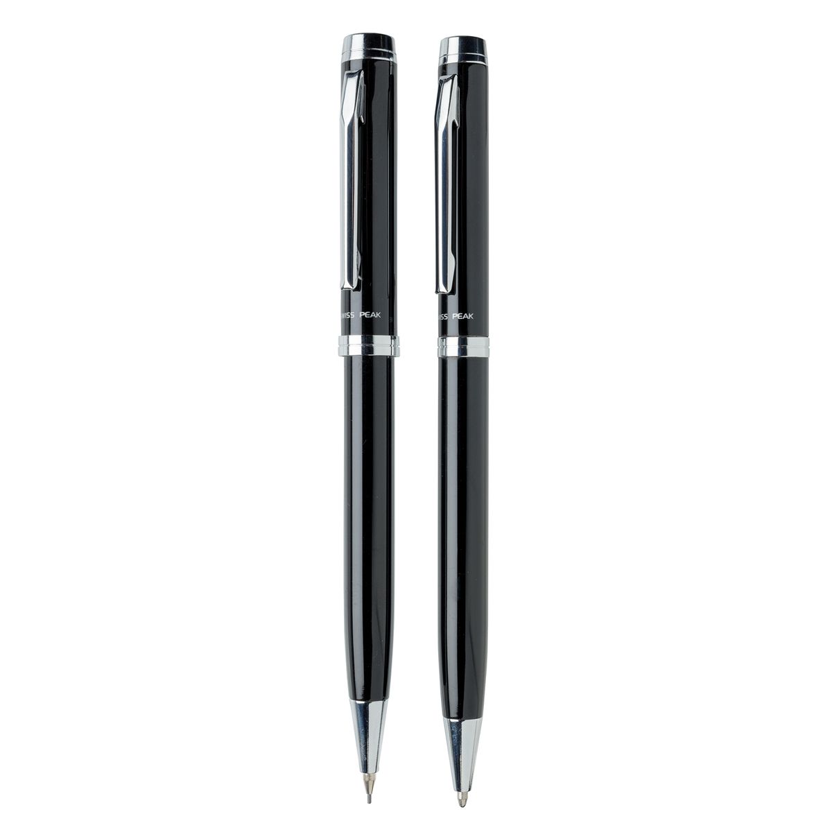 Элегантный набор Luzern от бренда Swiss Peak выделяется своим строгим лаконичным дизайном. В него входят шариковая ручка и механический карандаш. В ручке используются качественные немецкие чернила, которых хватит, чтобы прочертить линию длиной 1200 м. Механический карандаш поставляется с тремя сменными стержнями толщиной 0,7мм. Набор упакован в фирменную подарочную коробку.