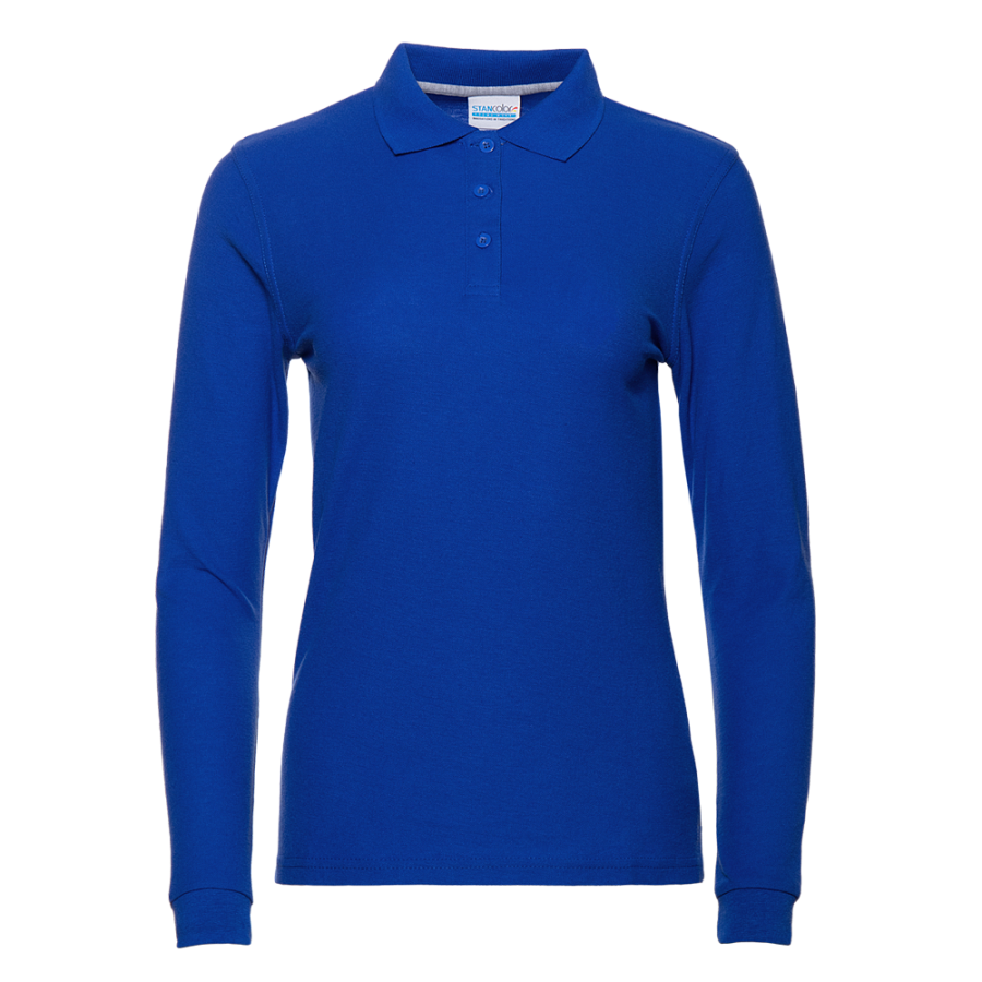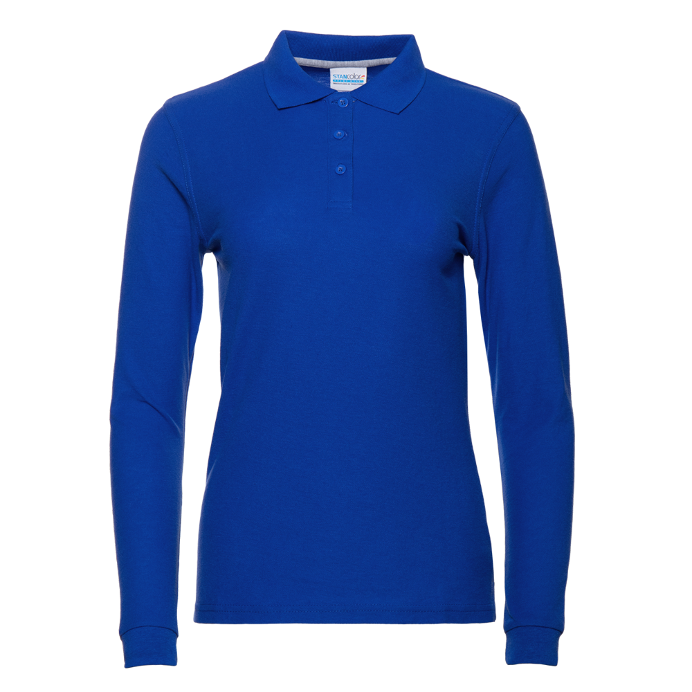 Женская рубашка поло приталенного силуэта с отложным воротником, длинным рукавом и застежкой на пуговицы.