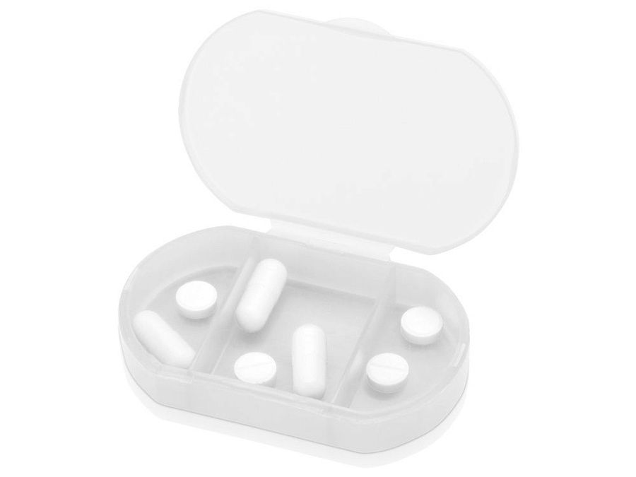 Компактная таблетница выполнена из прочного полупрозрачного пластика, имеет три отделения.