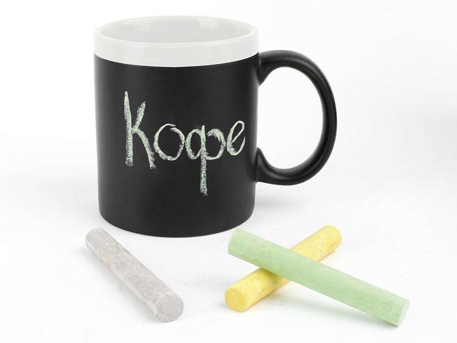 Оригинальная кружка на 320 мл имеет специальную поверхность, на которой можно рисовать мелками, тем самым меняя дизайн кружки каждый раз. Необычный и полезный подарок для родных и друзей. Мелки в комплект не входят.