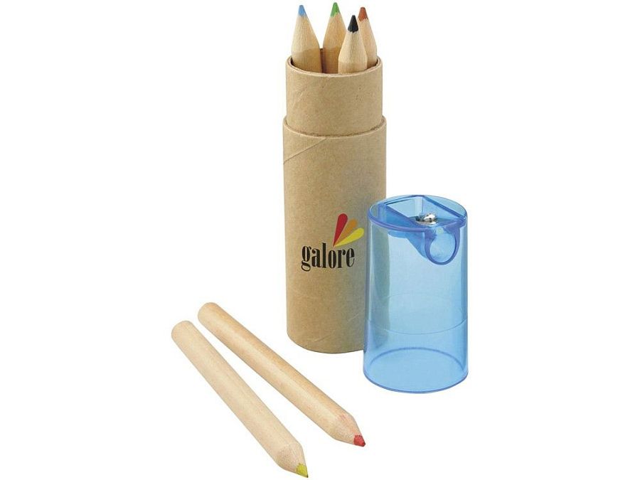 Набор содержит 6 цветных карандашей и футляр с крышкой-точилкой. Отличный вариант для создания оригинального промосувенира. Крышка позволит аккуратно собрать стружку в процессе подтачивания карандашей.