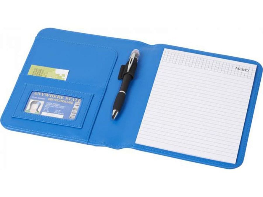 Папка с держателем для ручки, карманами для документов и блокнотом А5 с 20 страницами линованной бумаги. Ручка и принадлежности не включены.