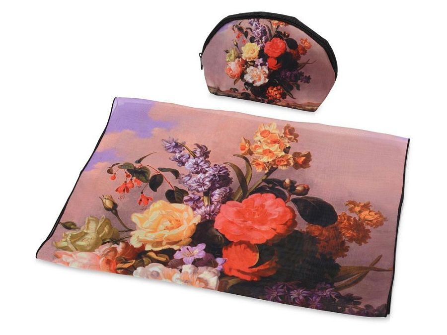 Изысканный подарочный набор для стильной женщины. Косметичка и шарф с цветочным принтом, выполненные в едином стиле, станут отличным дополнением к образу. Настоящий вкус проявляется в деталях.