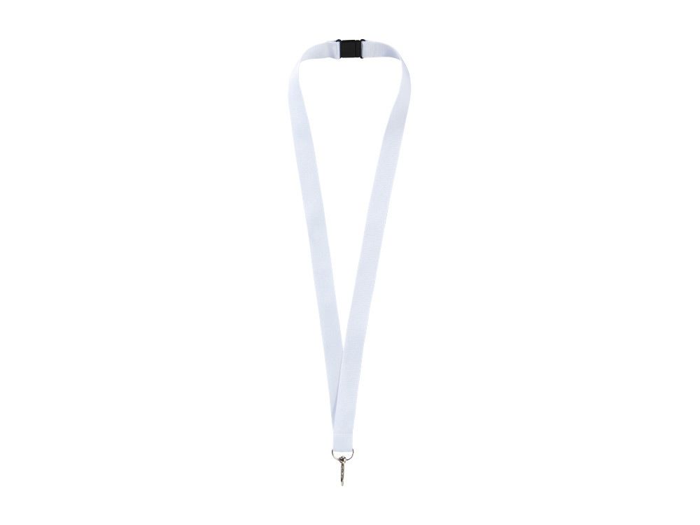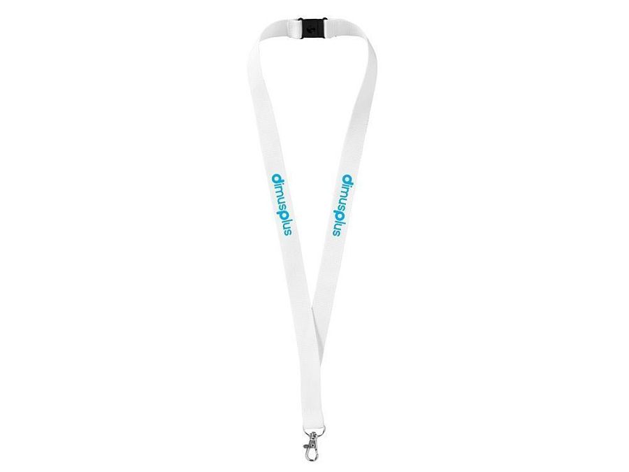 Шнурок на шею выполнен из прочного полиэстера и оснащен защитным замком и карабином. К шнурку можно крепить бейджи с информацией об участниках и организаторах рекламных кампаний, выставок и форумов.