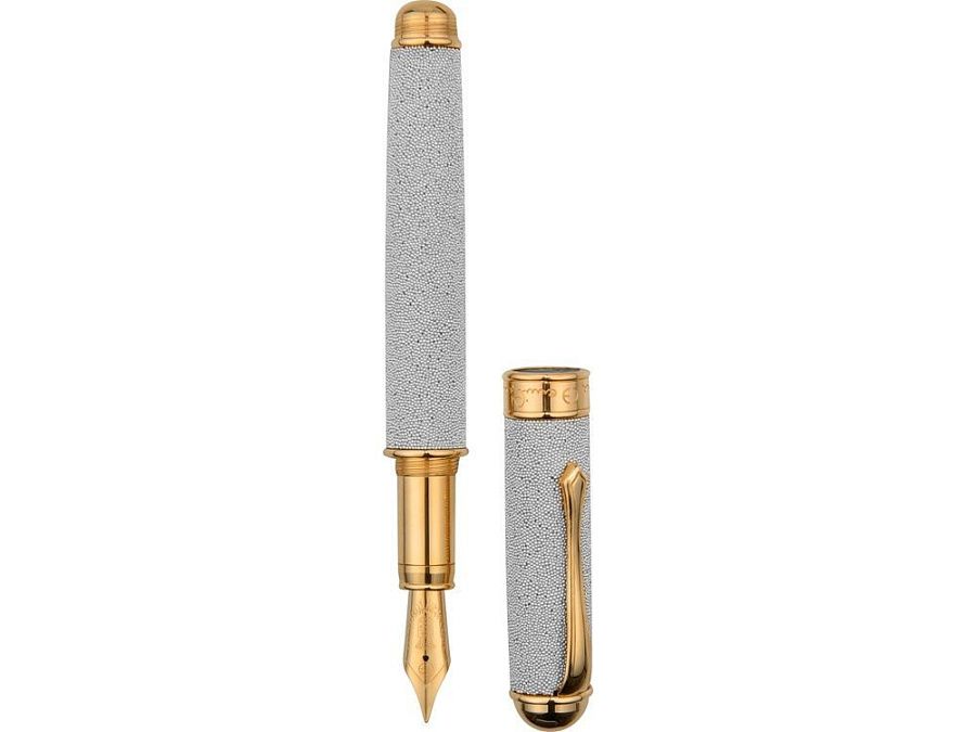 Корпус этой оригинальной перьевой ручки покрыт крошечными металлическими шариками. Множество миниатюрных сфер не только являются метафорой мироздания, но и создают удивительные тактильные ощущения, когда держишь эту ручку в руке. Человек, которому подарят такую ручку, не захочет с ней расставаться.
