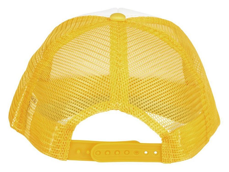 Кепка из 5 панелей Trucker. Оригинальная кепка на окружность головы 58 см с передней поролоновой частью, пластиковой сеткой сзади и пластиковой застежкой. Эта кепка полностью соответствует требованиям к соединениям AZO, формальдегиду и ПХФ. Полиэстер и поролон.