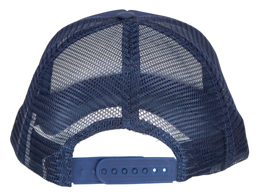 Кепка из 5 панелей Trucker. Оригинальная кепка на окружность головы 58 см с передней поролоновой частью, пластиковой сеткой сзади и пластиковой застежкой. Эта кепка полностью соответствует требованиям к соединениям AZO, формальдегиду и ПХФ. Полиэстер и поролон.