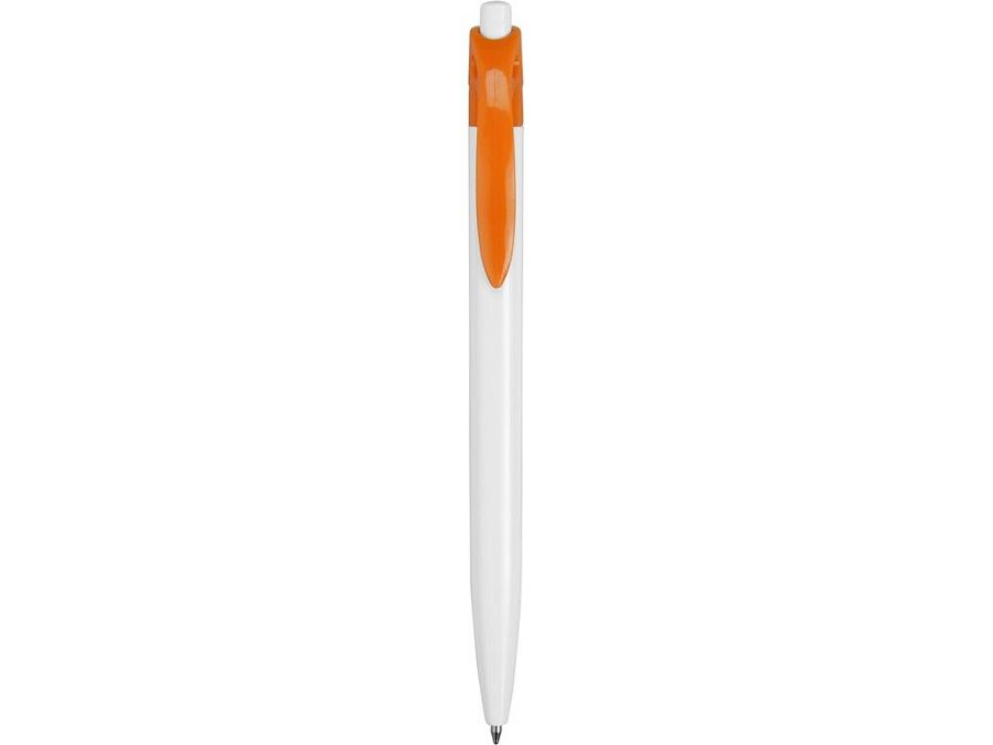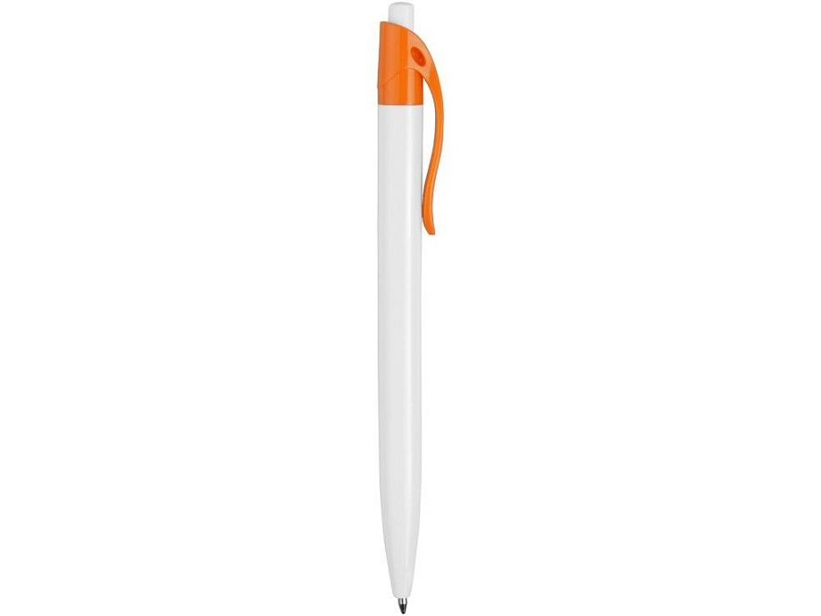 Стильная пластиковая ручка с ярким цветным клипом и белым корпусом отлично подойдет для нанесения логотипов и рекламной информации. Нажимной механизм.