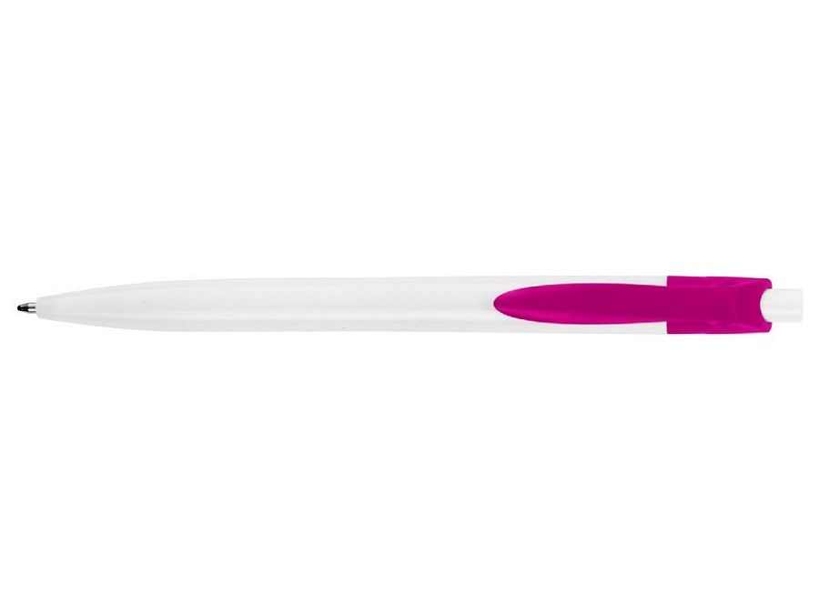 Стильная пластиковая ручка с ярким цветным клипом и белым корпусом отлично подойдет для нанесения логотипов и рекламной информации. Нажимной механизм.