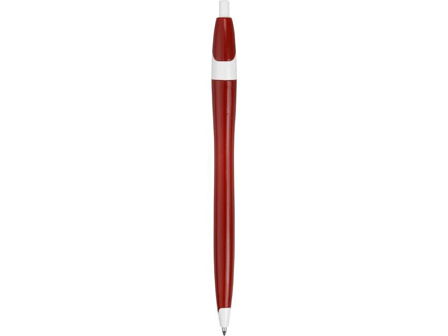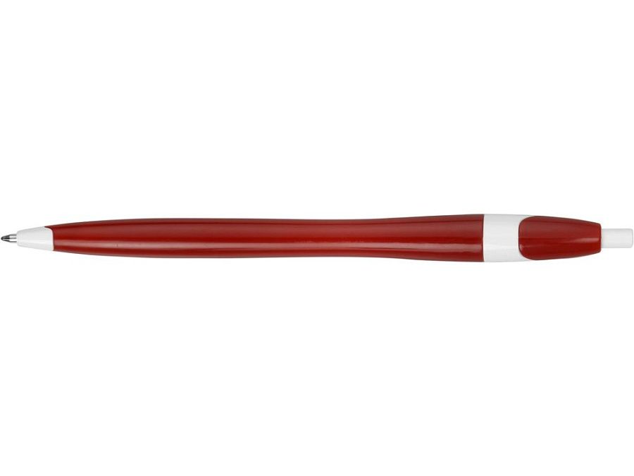 Простая, но стильная пластиковая ручка с цветным корпусом и белыми вставками на носике, кнопке и под клипом. Белые вставки делают ручку более заметной, не отвлекая от рекламной информации на ее корпусе.