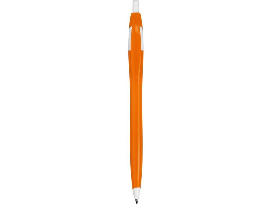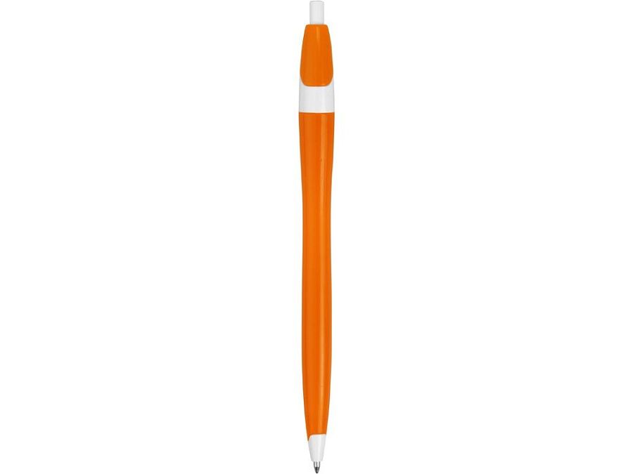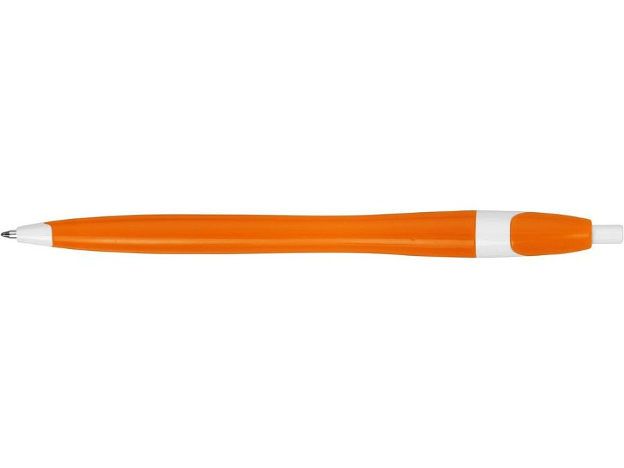 Простая, но стильная пластиковая ручка с цветным корпусом и белыми вставками на носике, кнопке и под клипом. Белые вставки делают ручку более заметной, не отвлекая от рекламной информации на ее корпусе.