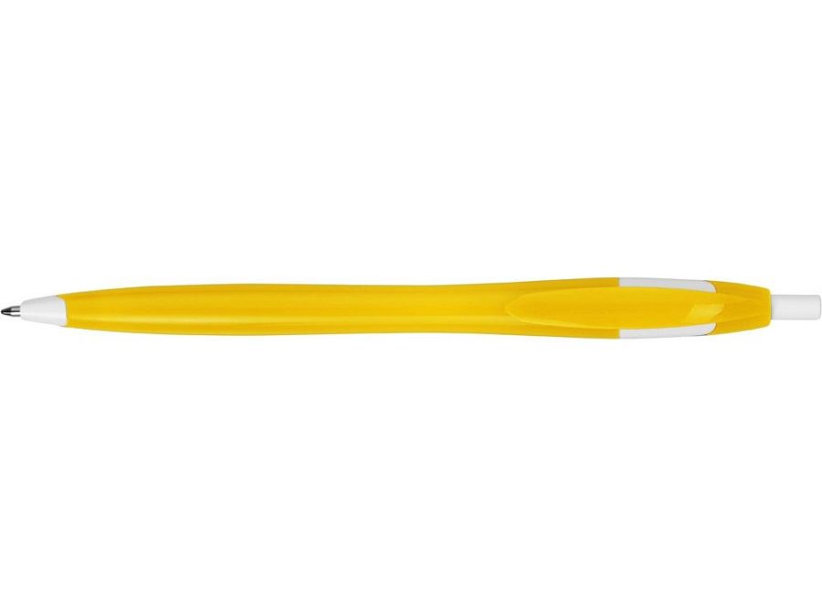 Простая, но стильная пластиковая ручка с цветным корпусом и белыми вставками на носике, кнопке и под клипом. Белые вставки делают ручку более заметной, не отвлекая от рекламной информации на ее корпусе.